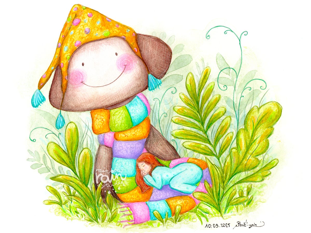 This painting has many depths, but one of them was finding coziness and comfort. I think it’s a cute little thing, that maybe will make you smile or warm some hearts. I’d like us all to be able to find comfort like that, in any circumstances.